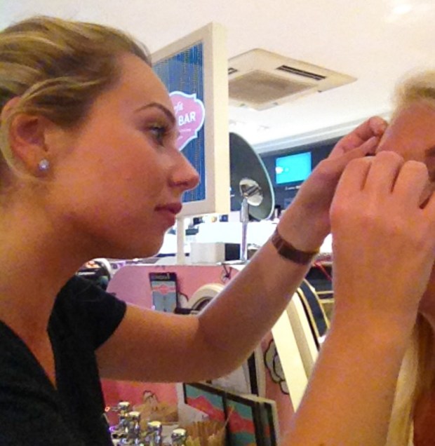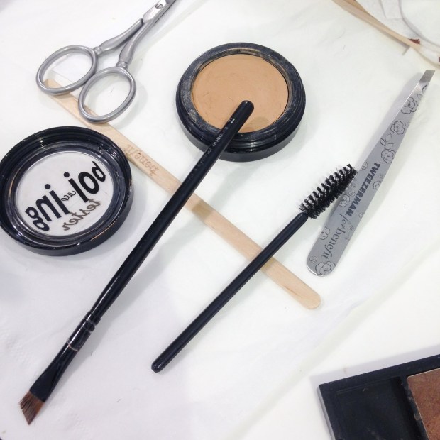 Kathy m’explique (sans surprise pour moi) qu’en tant que blonde, mes sourcils ne sont pas très fournis et surtout très clairs! (vive le duvet de bébé). Le but 1er sera donc de les foncer par une coloration temporaire, en respectant les traits et courbes de mon visage.