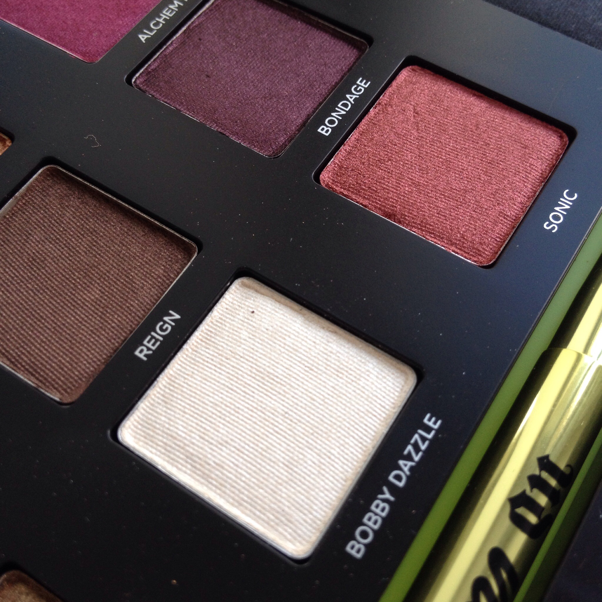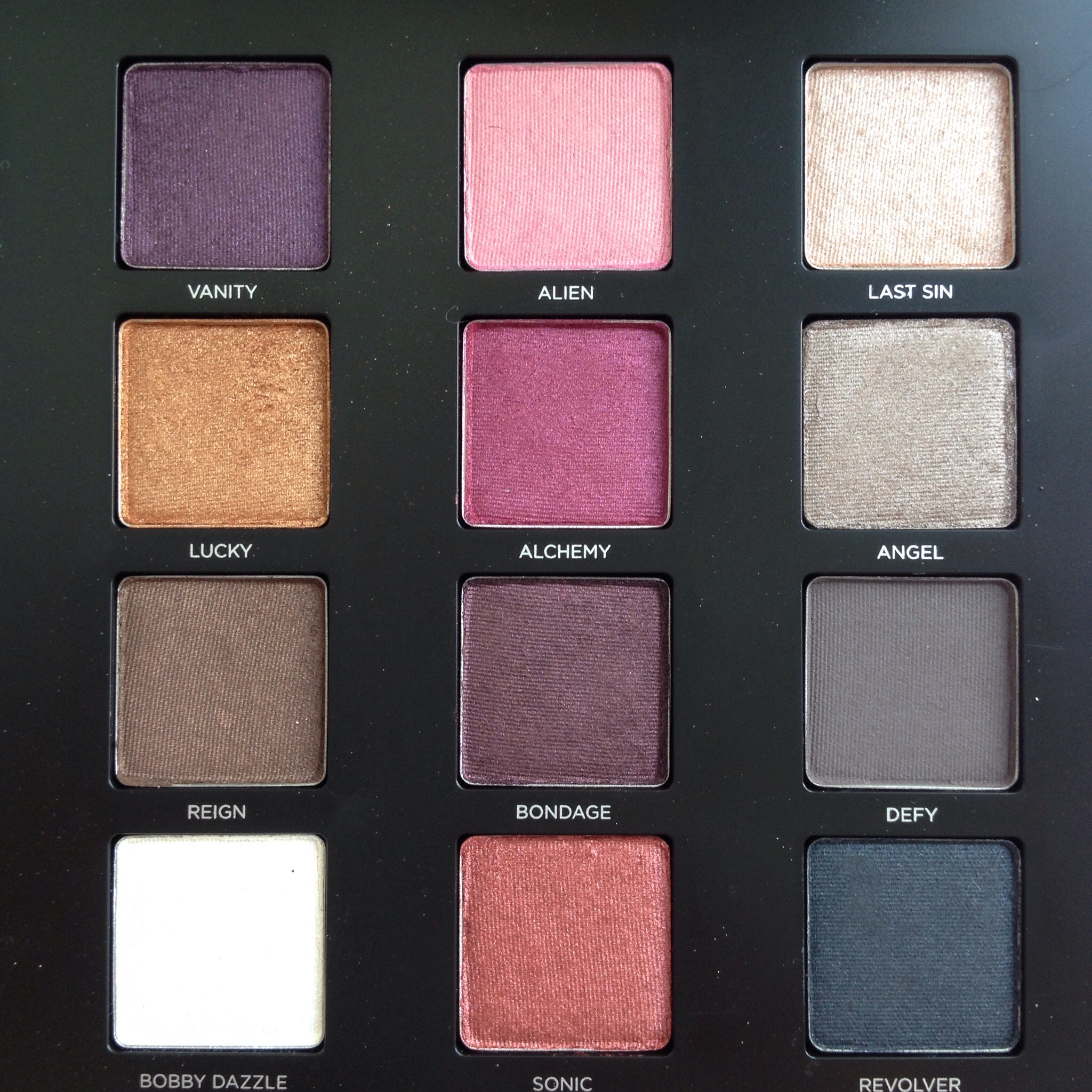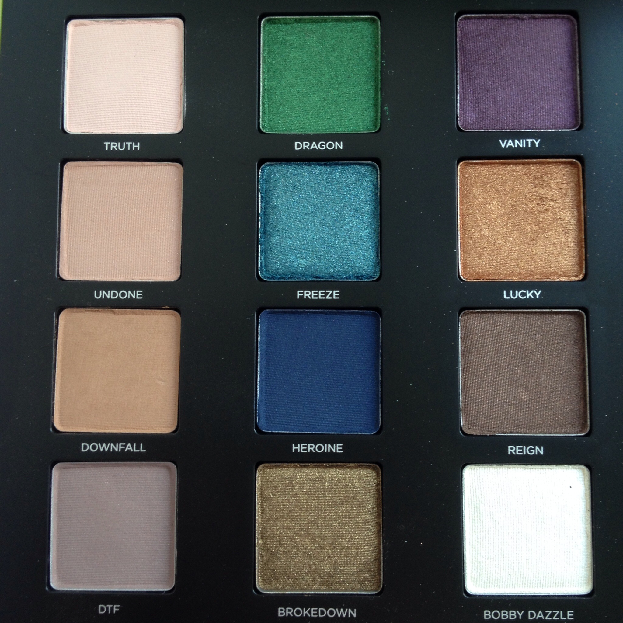 Avant de vous dévoiler les swatchs, j’avais envie de vous parler de certains fards, les « vrais » mats de la palette, à savoir: Truth, Undone, Downfall, DTF, Héroïne, Defy, Revolver (attention certains possèdent de micro micro micro micro paillettes)! Ces fards sont justes parfaits pour être travailler à mon sens comme fards de transition! Mais la réserve est là.. Ils sont très poudreux! N’ayez crainte, la poudre se forme à la prise de matière, mais les fards ne chutent pas à la pose et à l’estompage sur la paupière!! Ouf ouf!!