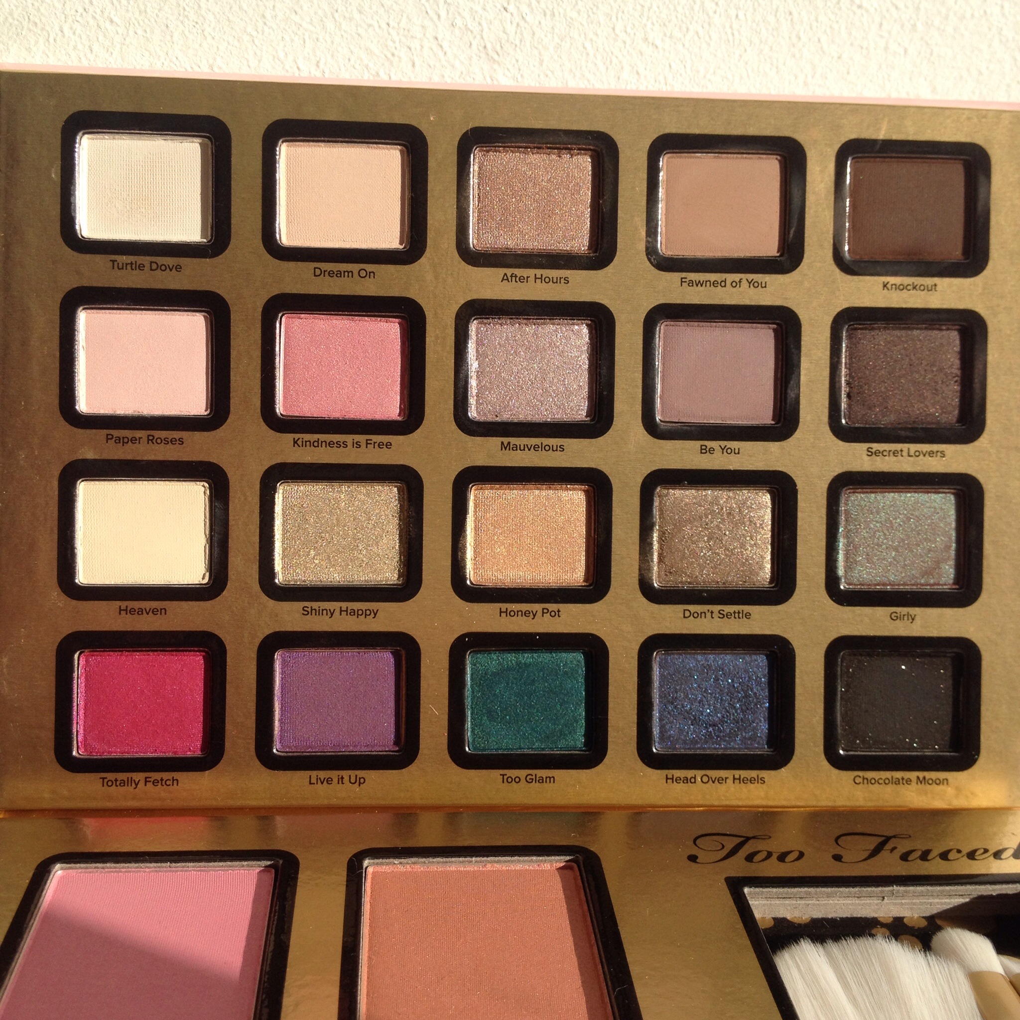 Hola lalalala!! Lol elle est terrible cette palette, merci à toi d’avoir retourner tout le magasin et me donner l’invasion de l’avoir moi aussi. Je l’adore, elle est magnifique et j’ai hate de swatcher ces fards. J’ai une nette préférence pour les nudes, rosés et dorés mais le vert Too glam est une tuerie <3. Ce que j'aime aussi c'est le faite que cette palette soit complète (fards, mascara, pinceaux, blush, …) c'est beaucoup plus facile à emporter que de prendre un semi-remorque avec tout l'attirail. Puis autre point bib négligeable, Too Faced me fait rêver par le biais de ses packaging, de son univers, c'est un tout.