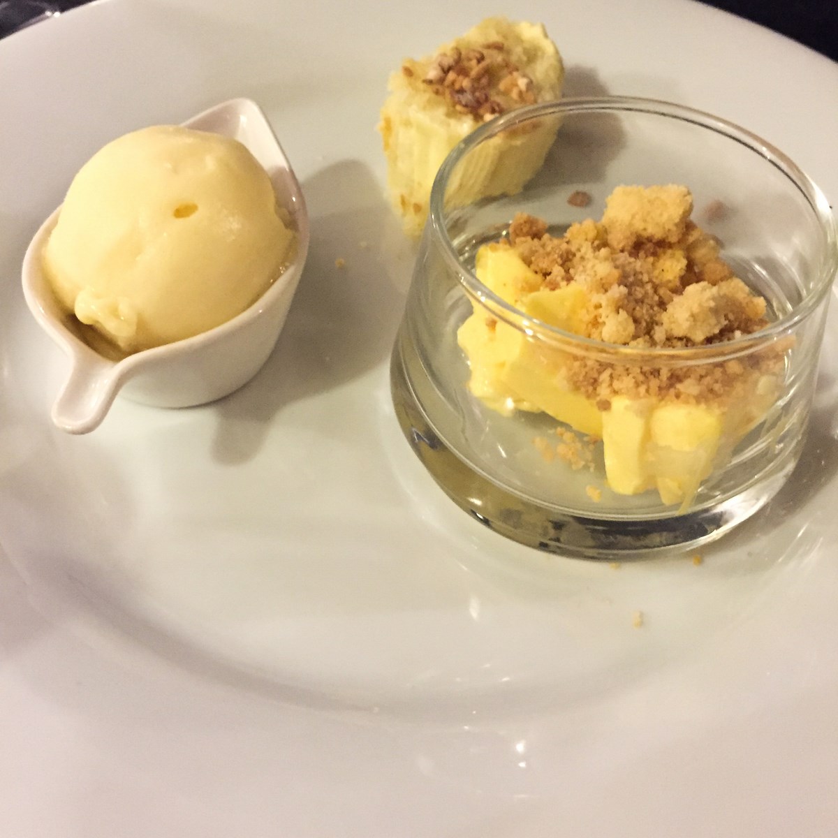 A moi de craquer sur la bûche de Noël. Ma crainte ici était de finir sur quelque chose de trop bourratif! Mais pas du tout! La note d’estragon dans l’appareil de la bûche a apporté de la fraicheur. Le chocolat blanc n’était pas du tout trop sucré ou écœurant. Ce dessert était tout en finesse. Idem pour l’homme, sa crème de citron était parfaite! (je me répète beaucoup j’ai l’impression :)). Et je peux vous dire que la crème de citron c’est notre rayon!