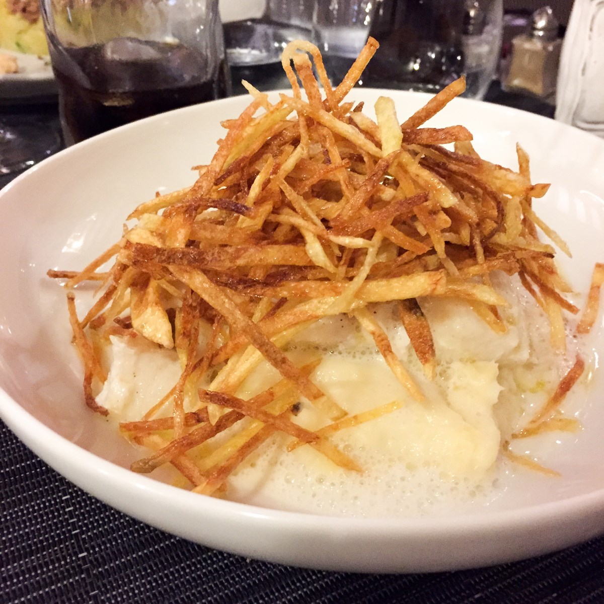 J’ai savouré en bonne gourmande que je suis chaque fourchette de mon assiette. Au delà de la parfaite cuisson du Merlu, de la texture parfaite de la mousseline de panais et du croquant des pommes allumettes, j’ai craqué disons le, sur le jus, cet espuma à la cardamome! Un régal de saveurs!
